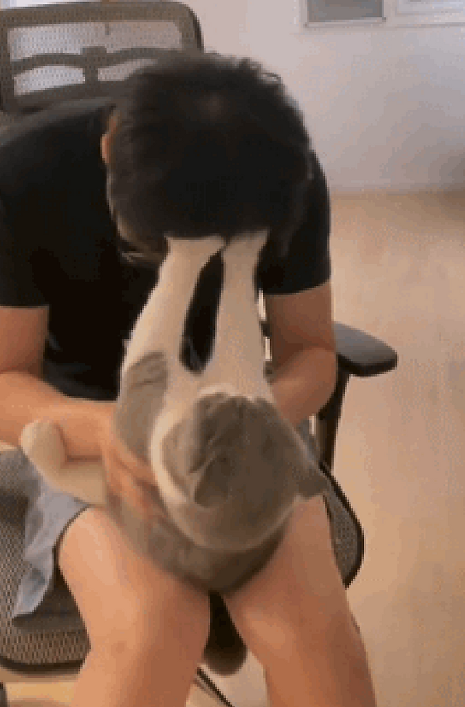 반려묘와 함께 지내는 한 네티즌은 평소에도 고양이와 장난치는 것을 좋아합니다. 이번에는 고양이에게 뽀뽀 시도를 하는 영상을 찍었습니다.