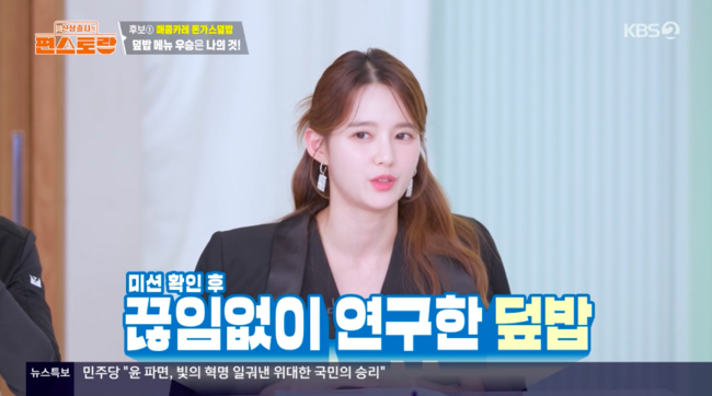 그날 저녁, 남보라는 ‘편스토랑’ 새로운 미션 30인분 덮밥 만들기 미션을 연습했다. 직접 만든 매콤 카레 덮밥과 떡갈비 덮밥을 만들어 예비 신랑에게 선보였다.