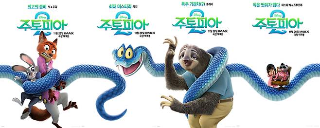 공개된 포스터는 이번 작품 속 뉴 페이스이자 미스터리한 사연을 품고 있는 푸른 뱀 게리가 모두를 휘감고 있는 독특한 구도로 눈길을 끌며 그가 주토피아를 뒤흔들 사건의 중심에 설 것임을 알 수 있다.