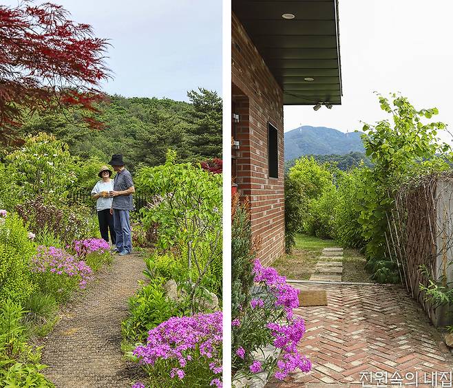물론, 가드닝을 즐기기 위해 정원을 만드는 만큼 손수 흙을 만지는 재미도 놓치지는 않았다. 산책길 곳곳에는 부부가 꺾꽂이한 짤막한 가지들이 싹을 틔우며 정원의 한편을 채울 준비를 하고 있고, 3년 전과 비교했을 때 이 땅을 배우며 여기에 맞는 식생을 찾고 시험해보는 것도 부부가 정원을 즐기는 법 중 하나다.