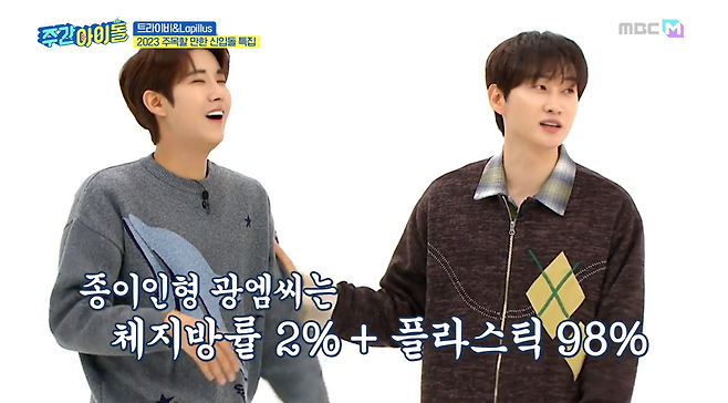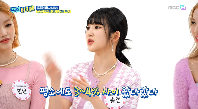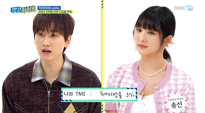 '주간아이돌'에 찾아온 올해 기대되는 걸그룹 트라이비&Lapillus!! 셀프로필에 남돌도 되기 어려운 체지방 3%맴버가 있어 모두를 놀라게 했는데요!