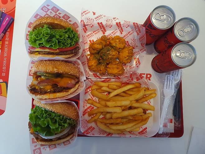 저는 베이컨 치즈버거?를 먹었는데 버거가 전반적으로 좀 달달해서 호불호가 갈릴까 싶었지만서도 오히려 좋아하는 사람은 굉장히 좋아하겠다 싶었습니다