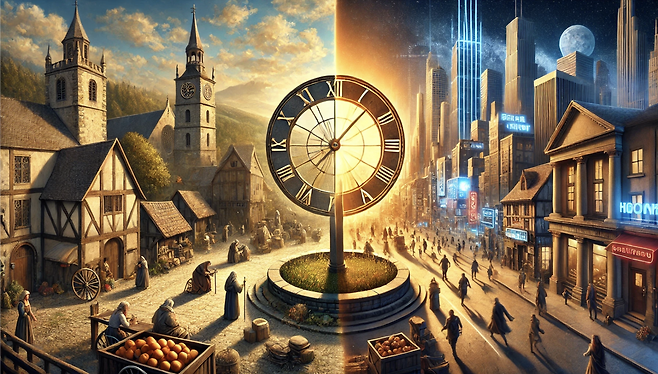 오늘날 우리는 세계 곳곳에서 정확히 맞춰진 시간에 따라 살아가고 있습니다. 하지만 이 모든 시스템은 불과 200여 년 전, 산업혁명이 가져온 변화에서 시작되었어요. 지금처럼 하루를 시간 단위로 쪼개고, 정확히 약속된 시간에 맞춰 움직이는 삶은 인류 역사에서 아주 짧은 시간 동안만 존재해 왔다는 사실이 놀랍지 않나요?