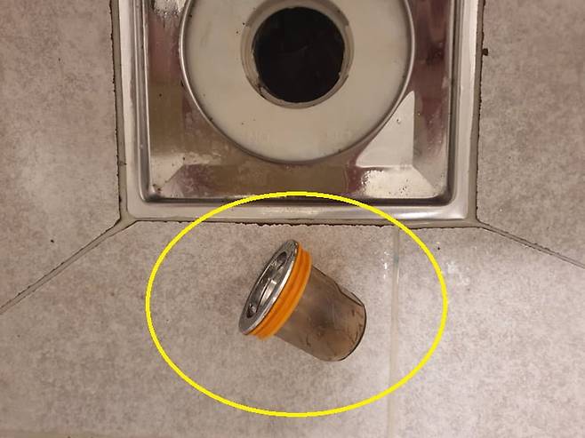 욕실 바닥 배관 속으로 동그랗게 표시된게 들어갔는데 어떻게 해야할까요 ㅜㅜ