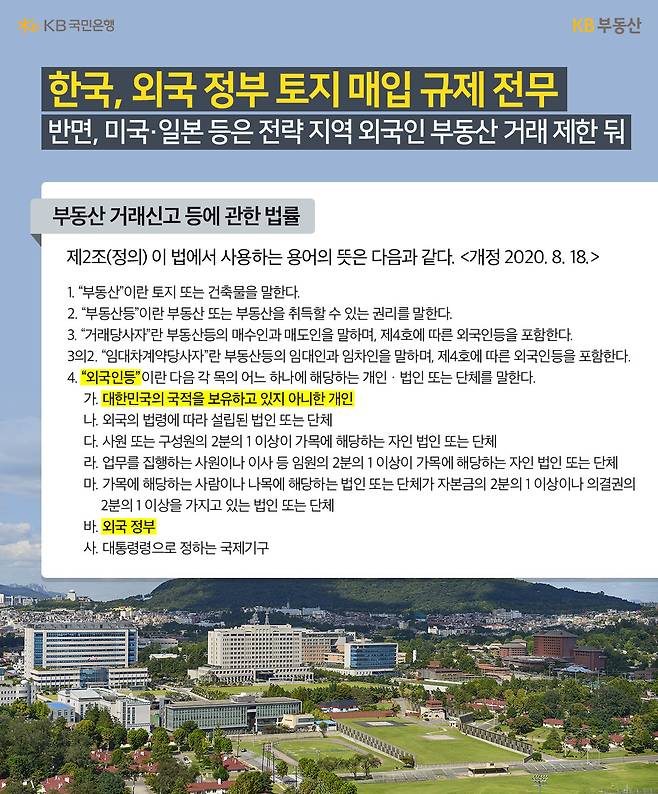 중국 정부가 서울 용산구 이태원동 일대의 대규모 토지를 매입한 사실이 뒤늦게 드러나 화제입니다. 이러한 거래는 단순 부동산 투자 이상의 의미를 지니고 있는 것일 텐데요. 구체적인 사안을 살펴보고, 현재 외국인 토지 매입 현황, 타 국가들의 외국인 토지 매입 현황 및 규제 등도 알아봤습니다.