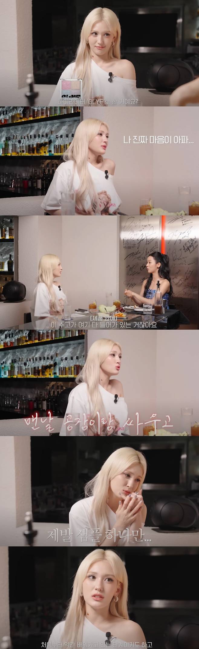 혜리는 전소미의 얼굴을 빤히 쳐다보다가 “아까부터 진짜 물어보고 싶은 게 있었다”고 서두를 열었다. 전소미의 메이크업에 쓰인 하이라이터가 자신의 브랜드의 제품이냐는 것. 앞서 그는 지난 4월, 뷰티 브랜드 ‘GLYF’를 론칭한 바 있다.