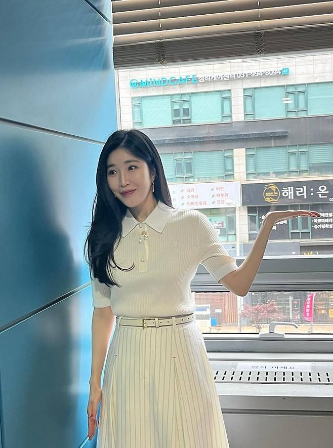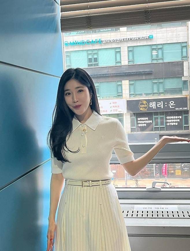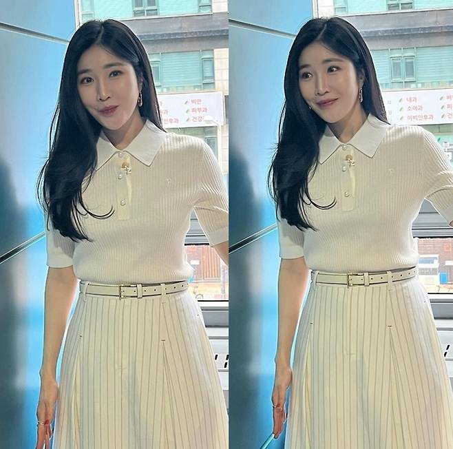 공개한 사진에서 이해리는 아이보리 골지 반팔 티셔츠와 아이보리 스트라이프 스커트의 톤온톤룩으로 단아하면서도 청순한 모습으로 눈길을 끌었다.