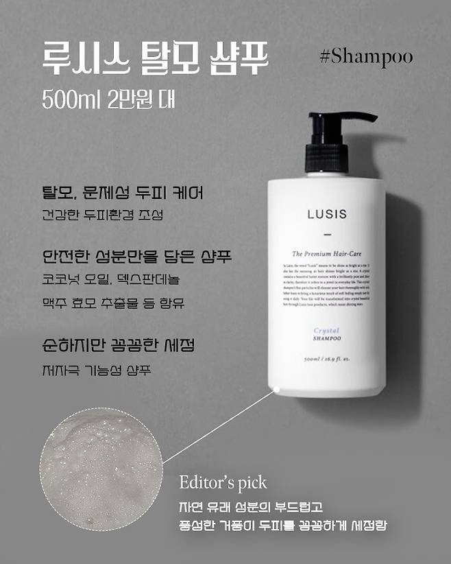 첫 번째 두피케어 제품은 루시스 크리스탈 탈모샴푸