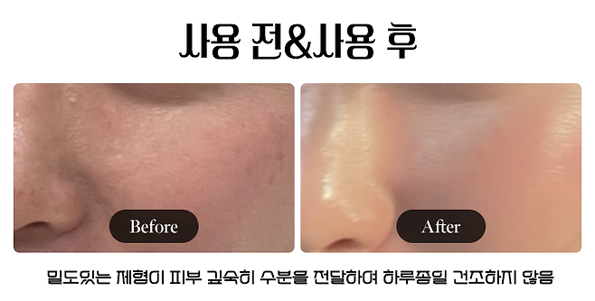 부드러운 발림성으로 빠르게 피부에 스며들어 곧 쫀쫀한 피부 표면을 느낄 수 있다.