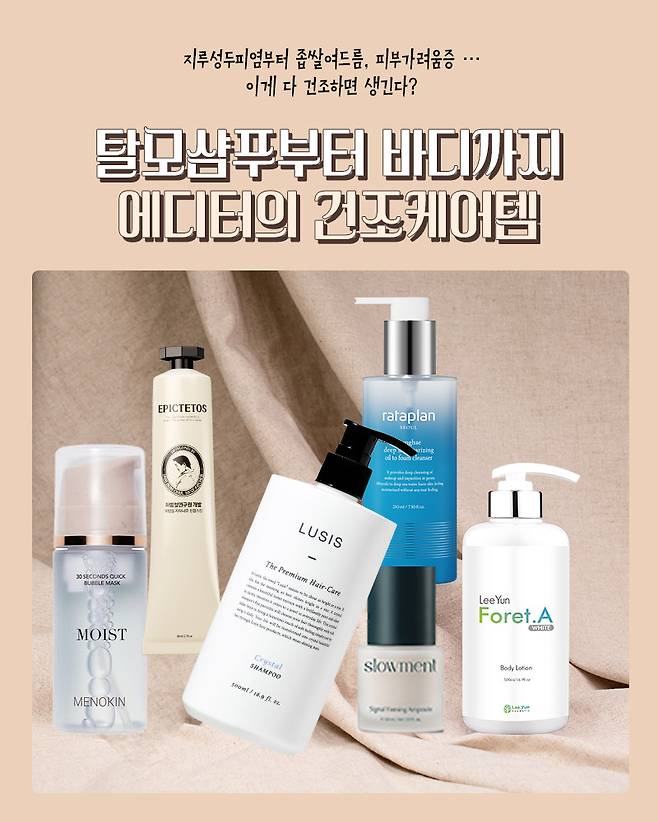 머리부터 발끝까지 환절기 건조함에 맞서 싸운 에디터가 직접 사용해 보고 건조함의 원인, 해결 방법에 대해 공부하며 준비한 에디터의 건조 타파 추천템.