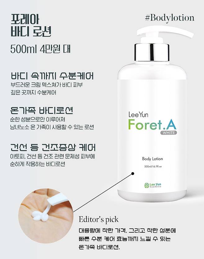 따라서 속보습까지 꼼꼼하게 채워줄 바디로션은 필수인데, 에디터가 추천하는 바디피부 건조 케어 템은 포레아의 바디 로션이다.