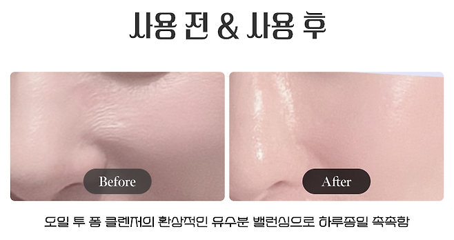 함유된 천연 유래 오일 성분이 모공 속 노폐물을 깨끗하게 세정해 이중 세안이 필요 없고, 각질까지 케어해 주기에 별도의 자극적인 각질 제거제 없이 올인원으로 끝낼 수 있다.