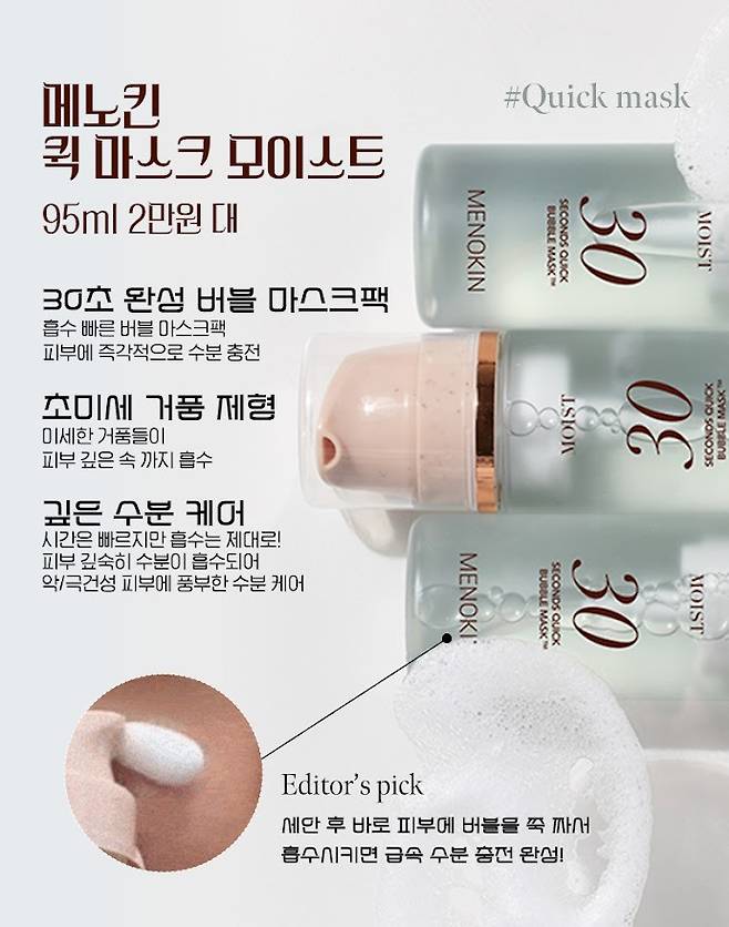 페이스케어템 두 번째 제품은 메노킨 퀵 마스크 모이스트.