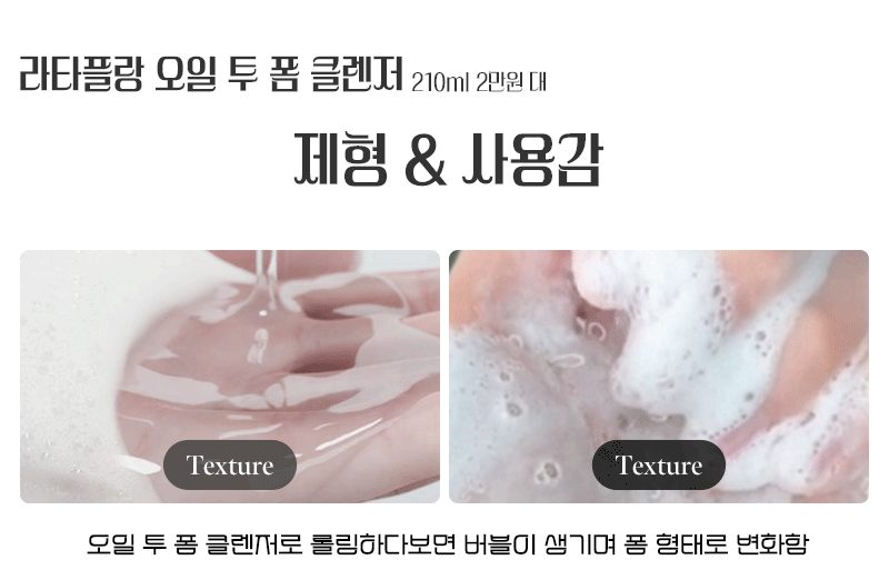 오일이 주는 묵직함과 오일리함이 전혀 없는 클렌저로 오일임에도 산뜻한 오일 제형이 부담이 없다.