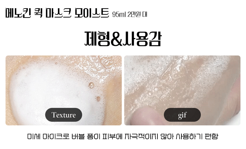 부드럽고 촘촘한 버블 제형의 마스크팩.피부에 가볍게 롤링 후 30초 후 톡톡 두드려 주면 끝. 보다 더 뛰어난 효과를 보고 싶다면, 2~3회 레이어링 해주면 영양 가득한 입자들이 피부에 거침없이 침투되는 느낌이다. 빠른 흡수로 잔여물이 남지 않고 산뜻해서 다음 크림 제품, 또는 메이크업을 바로 하기에 좋다.