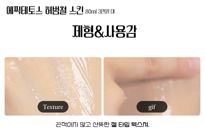에픽테토스 진정 스킨은 독특하게도 ‘젤’타입의 텍스처로 육안으로도 수분감이 가득하다. 스킨임에도 수분감의 밀도가 아주 가득 차다. 물보다 고운 입자인 자작나무 수액 71%로 되어있어서 바르는 순간 즉각적으로 피부 깊은 곳까지 사르르 흡수되는데 수분감뿐 아니라 이름답게 피부가 진정되는 것이 체감으로도 느껴진다.