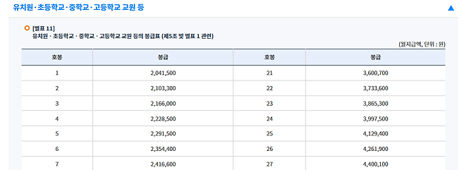 ✔ 봉급표는 전 교사 동일