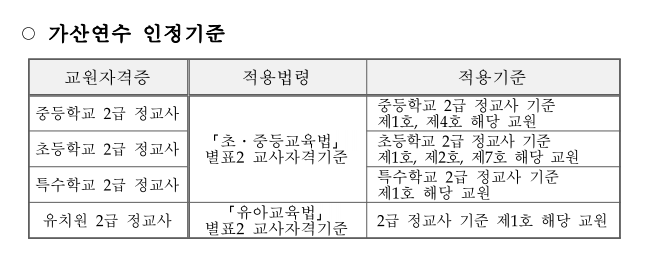 - 특수교사 → 조건에 따라 1호봉 가산