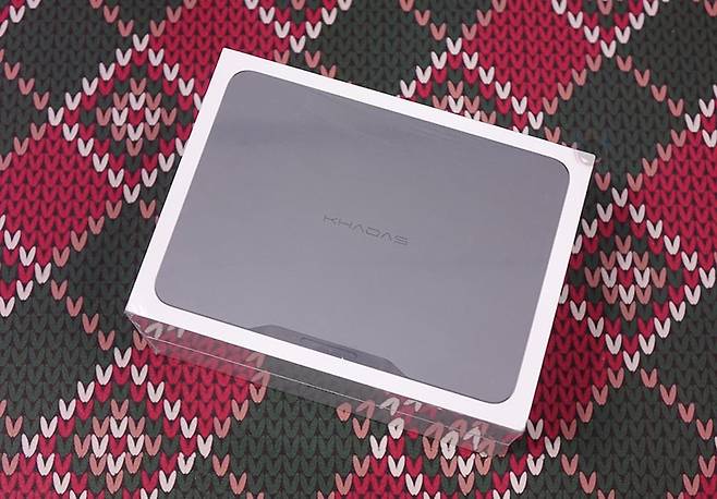 제품 패키지는 박스형태로 박스 전체가 비닐 밀봉처리까지 적용되어 있어서, 소비자입장에선 판매 제품에 좀 더 신뢰를 가질 수 있습니다. 그리고, 박스 상단에는 마인드(Mind) 미니 PC 본체 이미지가 실려있는데, 뒤에서 확인하겠지만, 실제 제품 사이즈(Size) 그대로 담은 겁니다. 박스 측면에는 Khads 로고(Logo)와 모델명을 새겨놨죠.