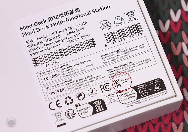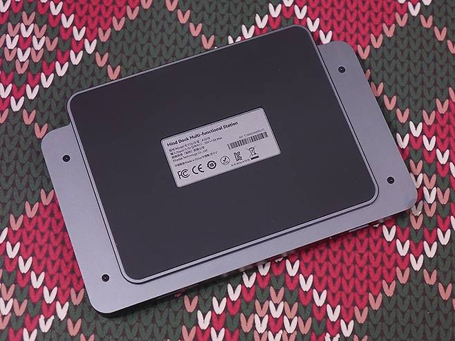 그리고, 바로 위에는 고무 커버가 하나 적용되어 있는데, 커버를 벗기면 슬롯은 확인할 수 있습니다. 이 슬롯은 방금 언급했던 마인드 미니PC의 포트를 확장할 수 있는 장치 마인드 독(Mind Dock, https://s.click.aliexpress.com/e/_DBYzhJ5)과 연결되는 슬롯부부느로 마인드 독 역시 소비자가 별도로 구매할 수 있습니다. 실제로 마인드 독을 잠깐 살펴보면, 마인드 미니 PC처럼 박스 전체 밀봉처리가 되어있으며, 박스 후면에 역시 국내 전자제품 안전(KC) 인증을 확인할 수 있어서 마인드 독과 규제제한 없이 자유롭게 구매할 수 있죠.