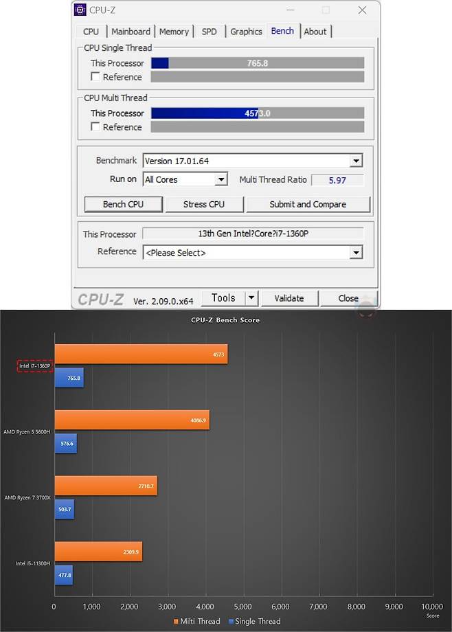 ▼인텔 i7-1360P+램 32GB+SSD 1TB 기준