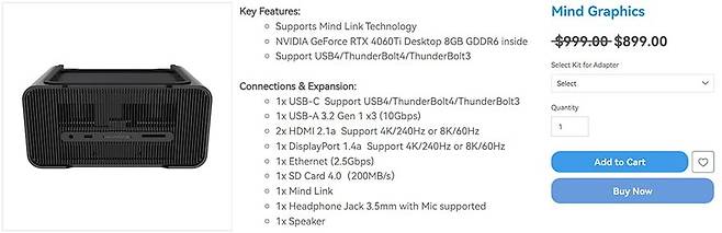 물론, 내장그래픽으로 게임을 즐기기에는 부족함이 있다는 걸 제조사도 알고 있어서 이를 보완하는 장치도 있습니다. 마인드 독(Mind Dock)처럼 마인드 미니 PC와 연결해 사용할 수 있는 eGPU 장치 '마인드 그래픽(Mind Graphics)'이죠. Nvidia 지포스 RTX 4060 Ti 8GB 그래픽탑재로 마인드 독처럼 위에 마인드 미니PC를 올려 연결 사용합니다. 또한, 이 장치에도 확장 포트를 갖추고 있어서, 처음부터 그래픽성능까지 고려한다면 마인드 독보다 마인드 그래픽을 선택하는게 낫죠. 이밖에도 카다스(Khadas)는 추후 마인드 미니PC와 연동되는 외부 모니터 등 다양한 장치들을 준비한 마인드 패밀리(Mind Family)를 준비하고 있습니다.