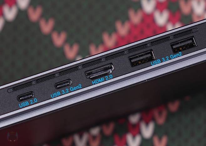 또한, 포트 확장을 할 수 있는 마인드 독(Mind Dock)을 함께 사용하면 유용한데, 앞서 언급했듯이 지문인식(Fingerprint scanner) 기능이 있기 때문에 시스템 보안을 강화할 수 있으며, 촬영작업을 자주 한다면 전면 SD카드 슬롯도 갖추고 있어서 별도의 카드 리더기도 필요 없죠. 여기에 후면에는 유선 랜(LAN) 포트를 갖추고 있어서 마인드 미니 PC의 무선 인터넷 지원보다 더 빠른 인터넷속도를 원한다면 마인드 독이 필수입니다. 참고로, 마인드 독에도 USB Type-C 전원 포트와 HDMI 포트가 있는데, 마인드 미니PC를 연결한 상태에서는 마인드 독이나 마인드 미니PC 어느 쪽에 연결해서 사용해도 작동됩니다. 물론, 마인드 독은 최대 100W 전력까지 지원하기 때문에 사용자가 연결하는 장치에 따라서 전원 연결을 선택하면 됩니다.