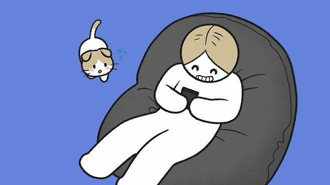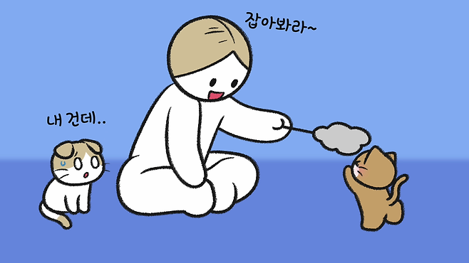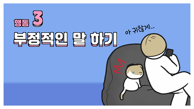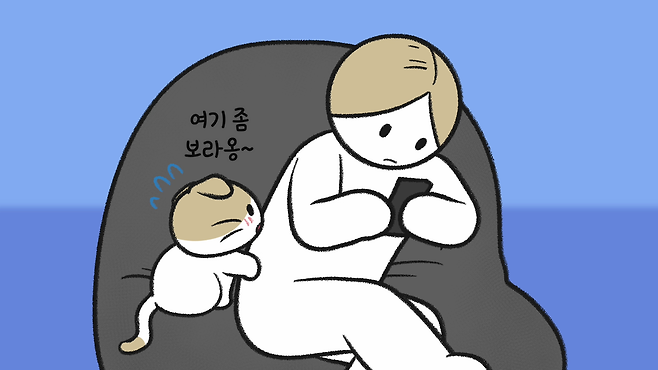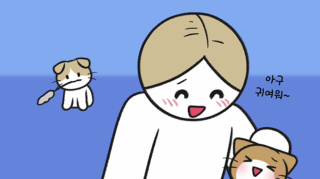 고양이를 놀아주거나, 쓰다듬어 주는 등
