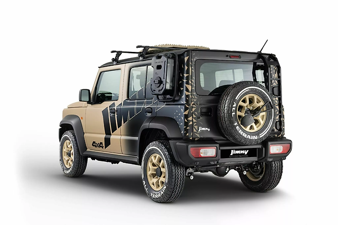다음은 스즈키 짐니 컨커러 콘셉트다. 이 모델은 아이코닉한 오프로드 차량의 강인한 특성을 강조하기 위해 다양한 액세서리를 추가했다. 차체는 사막에서 영감을 받은 매트한 마감으로 짐니 4×4 레터링이 옆면에 새겨져 있다.