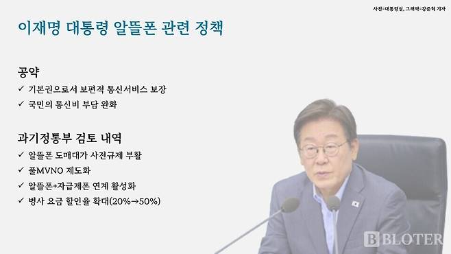 이재명 대통령은 알뜰폰 산업 육성을 공약으로 내세운 바 있다. 이 대통령은 후보 시절 '기본권으로서 보편적 통신 서비스 보장'과 '국민의 통신비 부담 완화'를 약속했다. 이에 따라 과기정통부는 자급제폰·알뜰폰 활성화로 통신비를 절감하는 방안을 검토하고 있다. 과기정통부는 현재 △도매대가 사전규제 부활 △풀MVNO 제도화 △'알뜰폰+자급제폰' 연계 활성화 △병사 요금 할인율 확대(20%→50%) 등을 들여다보고 있다.