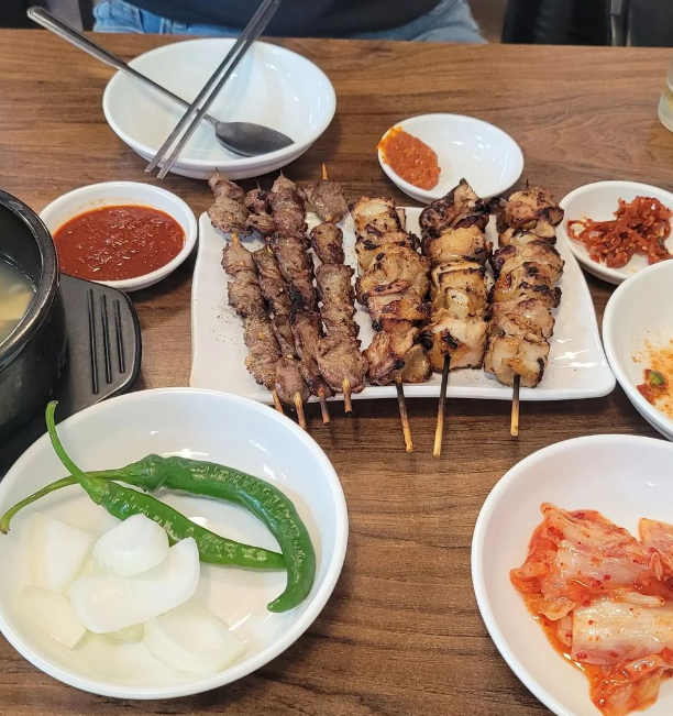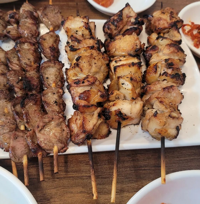 ▲메뉴: 옛날닭꼬치 (5개) 17,000원 / 부대찌개 20,000원