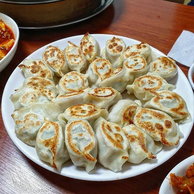 ▲메뉴: 군만두 (7,000원) / 소룡포 (7,000원) / 찐만두 (7,000원)