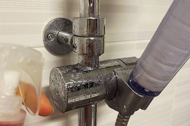 샤워기 청소도 해 볼 거예요. 이곳 역시 물 때와 찌든 때가 한가득인데요.