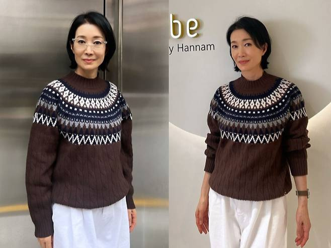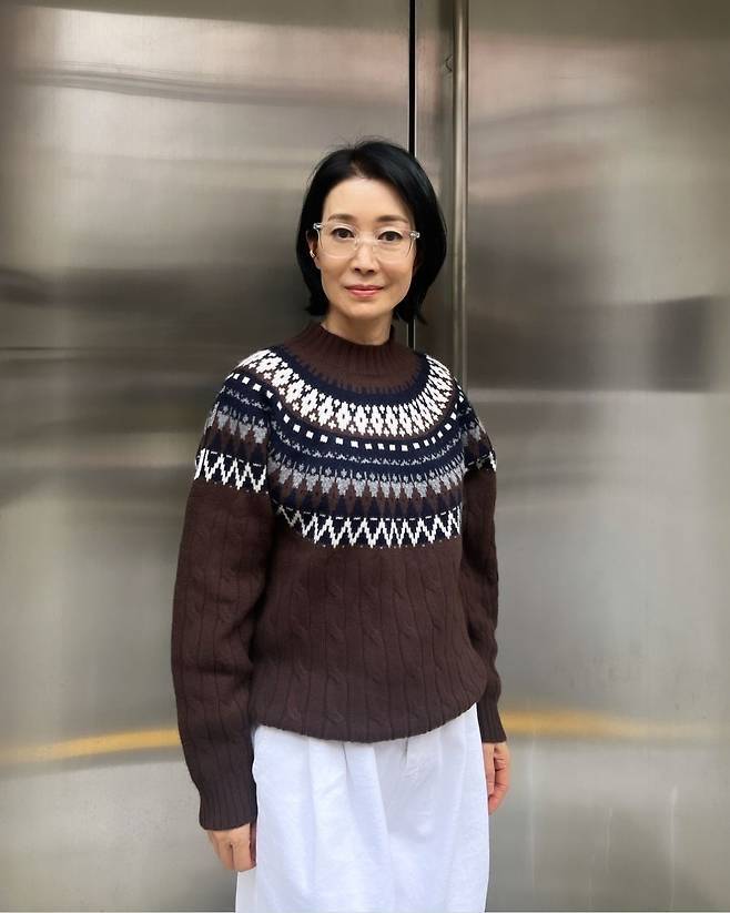나영희는 브라운 노르딕 니트를 착용해 포근하고 차분한 분위기를 자아냈습니다.