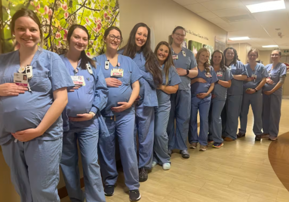미국의 한 병원 산부인과 분만실 근무 간호사 14명이 동시에 임신 중이라는 사실이 전해져 화제가 되고 있다.
