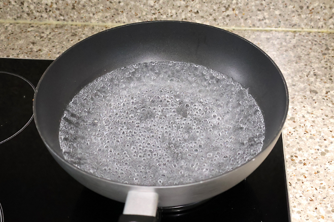 냄비에 물을 넉넉하게 붓고 팔팔 끓여요.