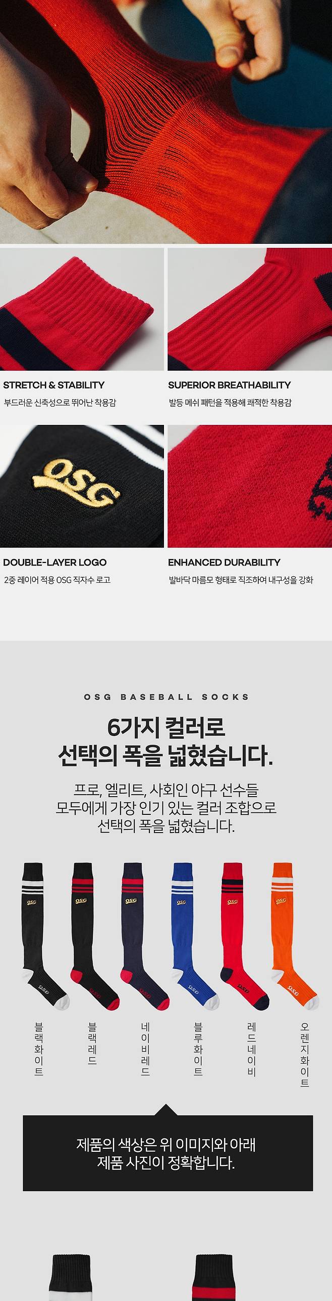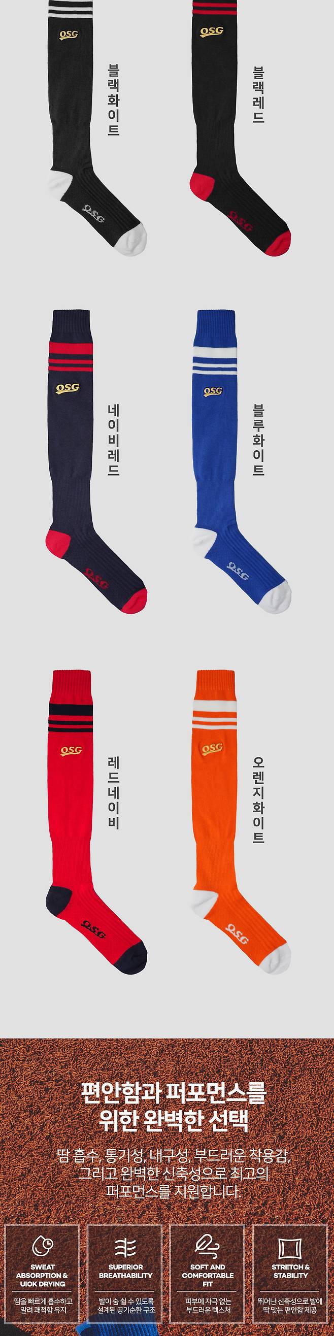 OSG양말은 발목 보호와 피로 감소를 돕는 안정성과 편안함을 제공하며,