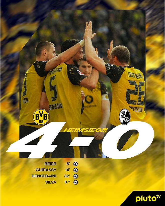 보루시아 도르트문트가 앞선 2연패를 끊고 다시 승리 궤도에 올랐다. 도르트문트는 분데스리가 31라운드에서 폭발적인 전반전 경기력을 앞세워 SC 프라이부르크를 4-0으로 완파했다. 이 승리로 도르트문트는 챔피언스리그 진출을 수학적으로 확정지었고, 시즌 마지막 3경기를 남겨둔 시점에서 3위에 승점 5점 앞선 리그 2위 자리를 지키게 됐다.