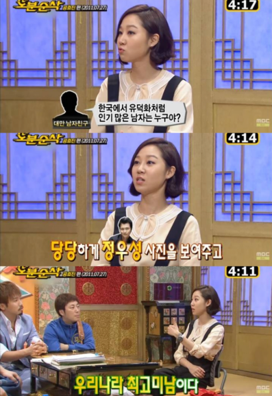 그러던 중 남자친구가 “한국에서 누가 제일 잘생겼느냐”고 묻자, 공효진은 주저 없이 정우성을 소개했다.