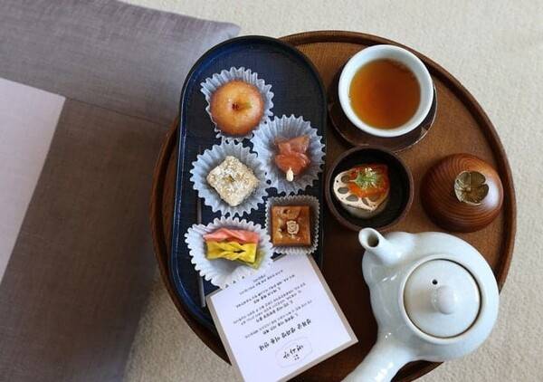 이 다과들은 조선의 궁중에서 임금과 왕비, 그리고 귀빈을 위해 준비되던 음식들로, 한 입 맛보는 순간 옛 왕실의 정취가 느껴진다고 할 수 있습니다. 체험 중에는 궁중복을 입은 직원들이 각 다과와 차의 유래, 재료, 맛에 대해 설명을 해주다가, 따뜻한 물 리필도 도와주니 더욱 편안하게 궁중 미식을 즐길 수 있어요.