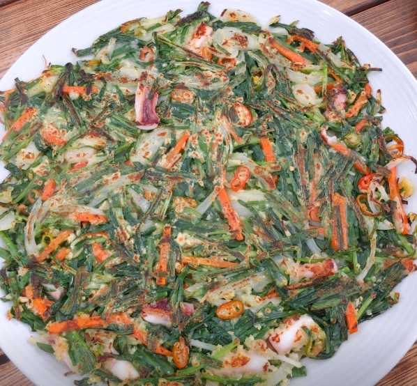 ▶ 파전 – 고소한 간과 매운맛이 조화롭고, 국수보다 맛있다는 평도 많음