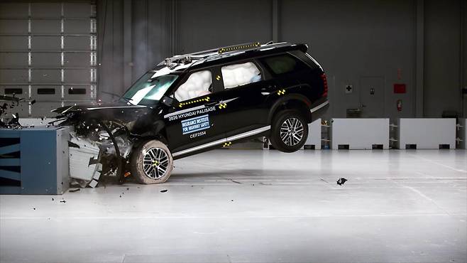 팰리세이드는 소형 오버랩 전면 충돌과 측면 충돌 시험에서는 최고 등급을 받았지만, 최근 핵심 항목으로 떠오른 중간 오버랩 전면 충돌 시험에서 뒷좌석 하부 안전벨트가 복부 쪽으로 이동하며 ‘양호(Acceptable)’ 평가에 그쳤다.