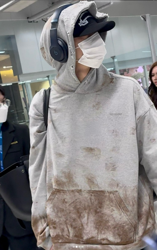 작년 6월 발렌시아가 패션쇼 참석을 위해 프랑스로 출국 할때 착용했던