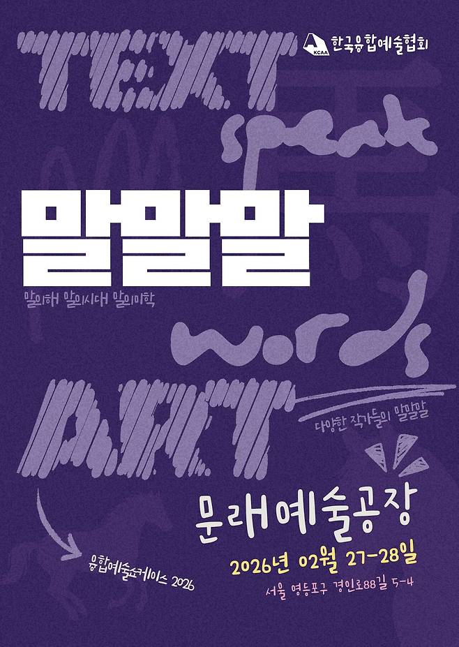 한국융합예술협회(KCAA)는 오는 2월 27일(금)부터 28일(토)까지 양일간 융합예술 쇼케이스 2026 <말말말>을 개최한다고 밝혔습니다. 이틀 동안 문래는 완성된 결과물이 아닌, 예술이 ‘만들어지는 순간’을 온전히 드러내는 현장이 될 예정입니다.