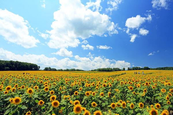 매년 여름 히마와리 마을에는 200만 송이가 넘는 화사한 해바라기가 만발해 꽃구경하기 좋은데요. 특히 7월 말부터 8월 중순에 방문하면 더욱 생기 있고 그림 같은 풍경을 만나보실 수 있습니다.