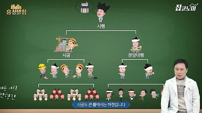 사실 시행자들이 모인 시행사는 규모가 그렇게 크지 않습니다. 그래서 프로젝트마다 분양대행사를 끼고 하죠. 사업에 대한 기획과 검토는 자체로 진행하지만 세일즈는 분양대행사에 맡기는 것입니다. 수요조사와 예상 분양가 수준 등등 대전략을 분양대행사가 짜기도 합니다. 분양업무도 대신 하는데요. 우리가 모델하우스 가면 만나는 직원들은 건설사 직원이나 시행사 직원이 아니라 대부분 분양대행사 직원입니다. 물론 미분양이 크게 터지면 대행사 직원들이 우르르 교체되기도 하죠. 분양대행사들은 밑에 광고대행사와 홍보대행사를 두는데요. 본질적으로 비슷한 성격의 업무들이 있다 보니 이를 겸하는 업체들도 있습니다.