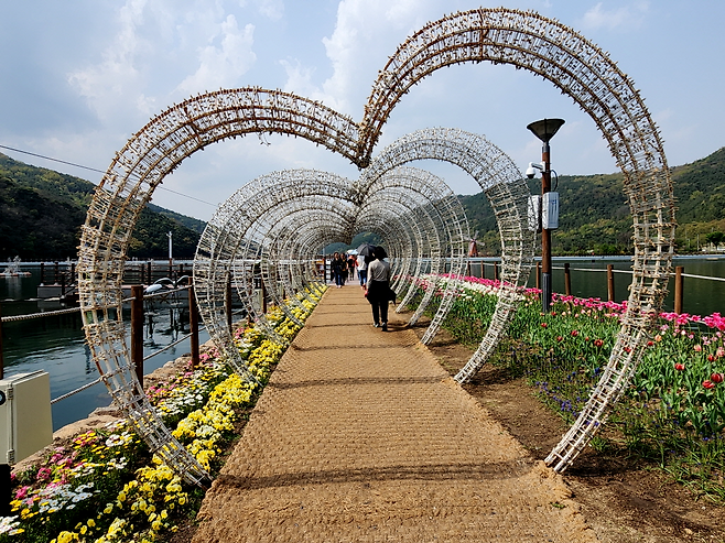 또한 10m 높이에서 시원하게 떨어지는 송해폭포의 물소리는 튤립 산책로의 싱그러움을 더해주며 4월의 나들이를 더욱 풍성하게 만들어줍니다.