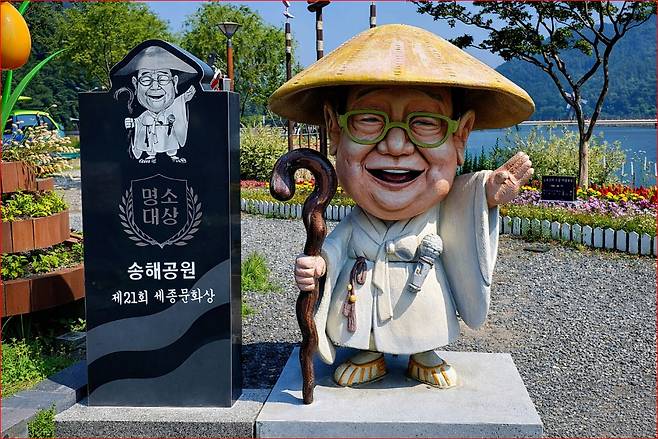 공원 곳곳에는 전국노래자랑의 영원한 MC, 송해 선생님의 조형물이 설치되어 있어 부모님들께 큰 인기를 얻고 있습니다. 마치 실제로 만난 듯 반갑게 인증샷을 찍을 수 있는 이곳은 어르신들 사이에서도 소문난 성지입니다.
