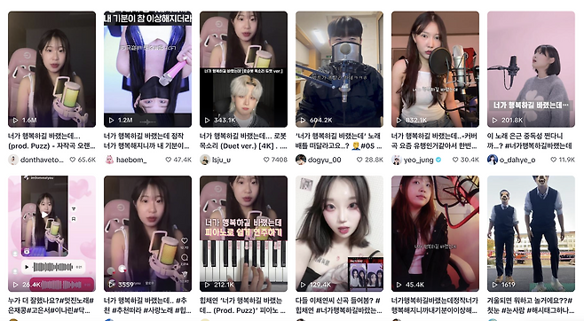 틱톡에서는 해당 노래 커버를 찾아보기 쉽다.