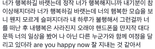 “너가 행복하길 바랬는데 정작 니가 행복해지니까 내 기분이 참 이상해지더라”라는